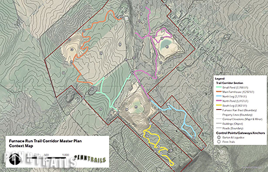 Penn Trails partnered with Barton & Loguidice to complete conceptual trail design as part of a Master Development Plan for Furnace Run Park. A 3.5 mile trail system was devised traversing agricultural, wooded, and riparian zones, to create a pleasant pedestrian recreational experience to tie together program areas.