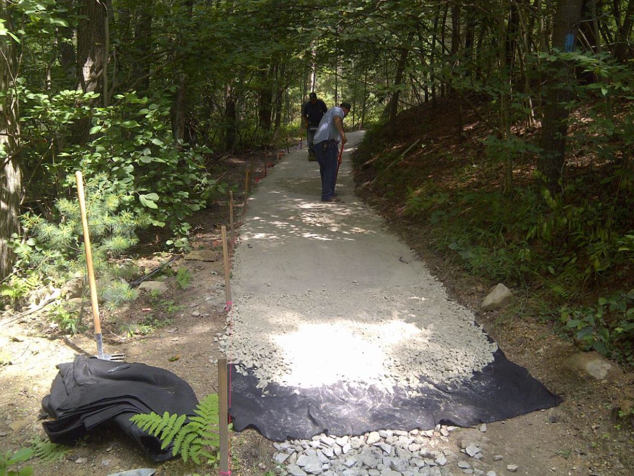 Early stages of this project involved a design-build of a universal access aggregate trail. Later stages of this project are still in progress, and involve a design build of a trail bridge in partnership with forestry students from the Pennsylvania State University. Students will harvest and process oak and locust and build the bridge under the supervision of the Penn Trails team and according to design and specifications by Penn Trails.