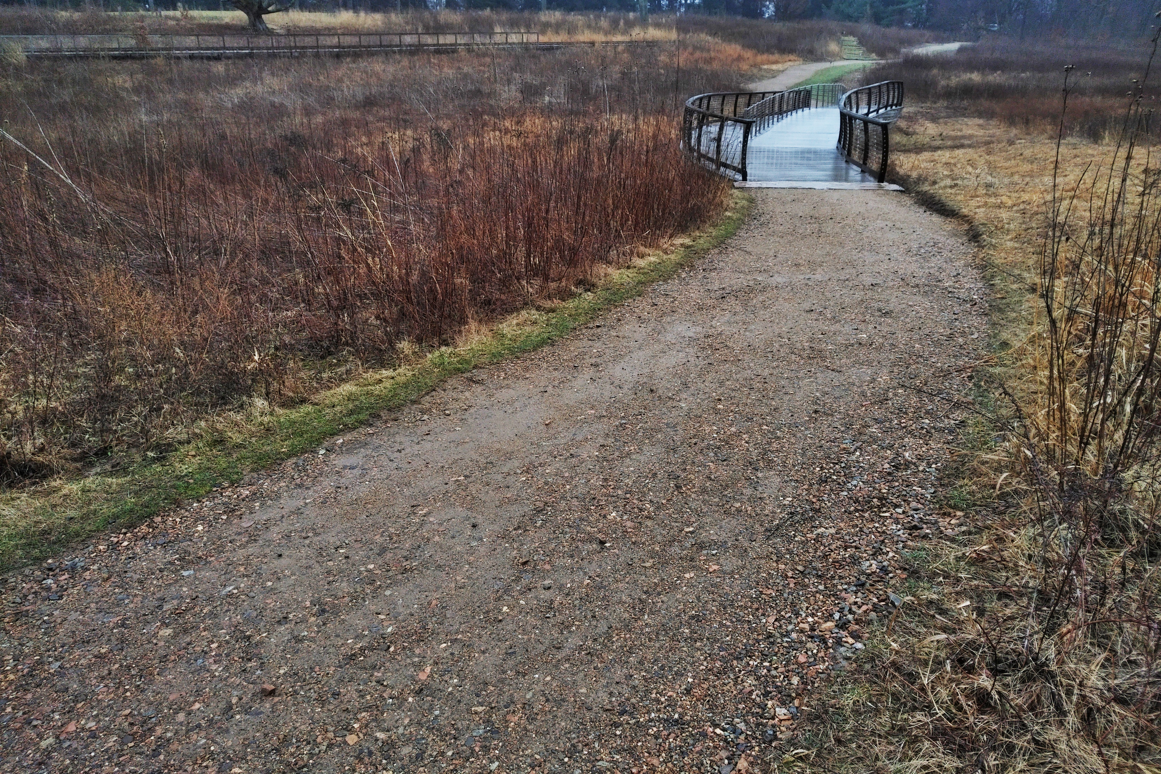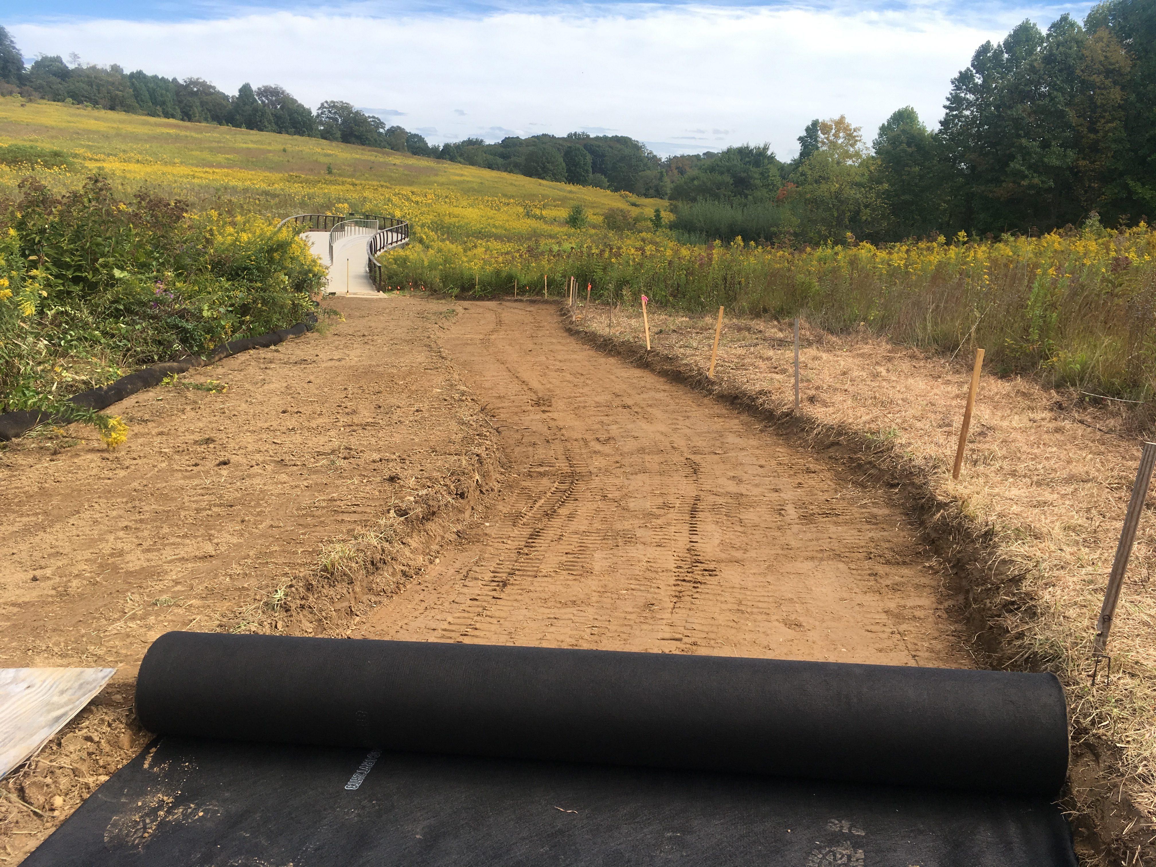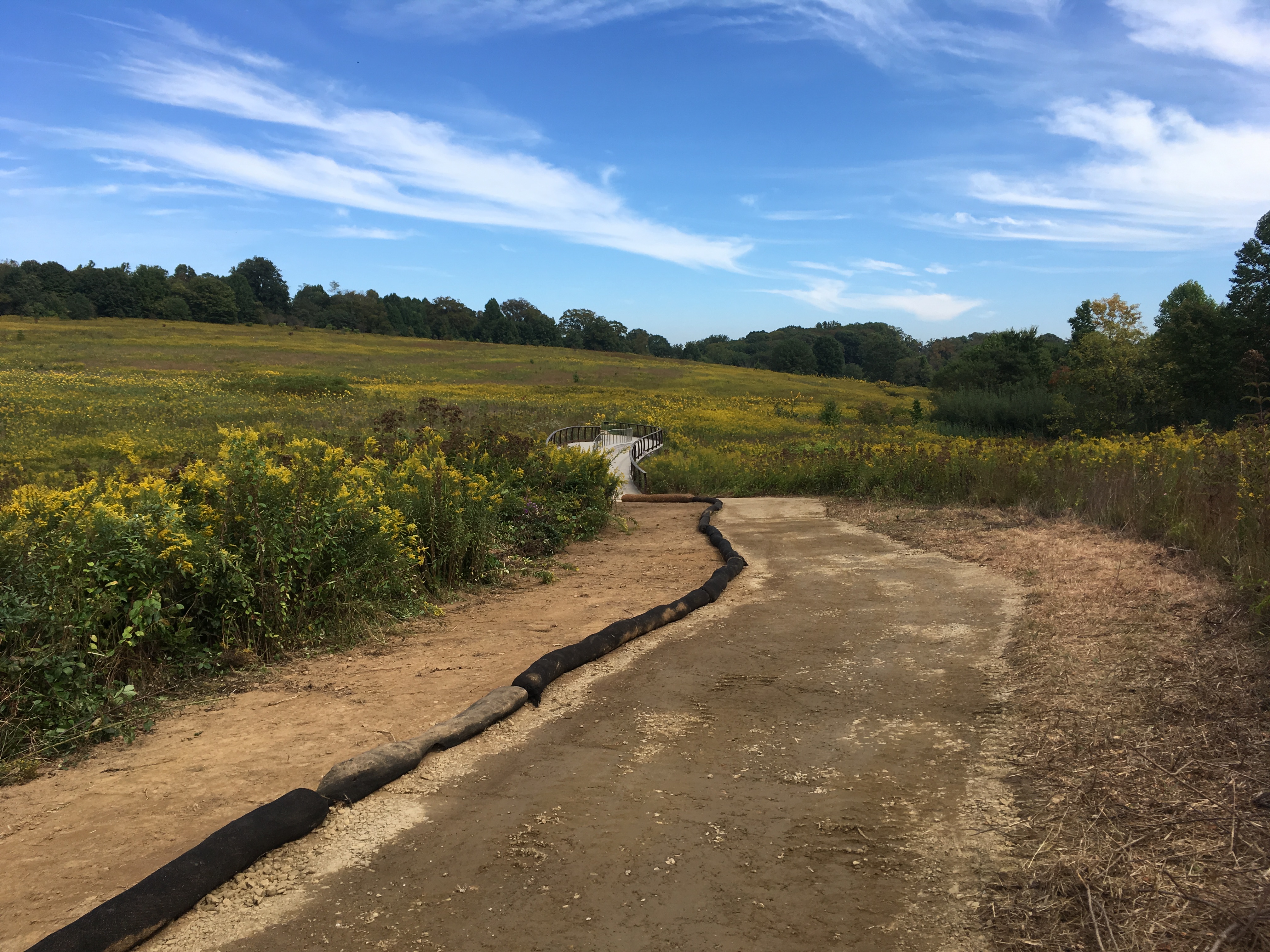 The meadow garden at Longwood Gardens was designed and built by others with an aggregate trail system and pavilion sited at the bottom of a large bowl-shaped meadow slope. Penn Trails was hired to rehabilitate the trail system when stormwater overwhelmed the design, causing the aggregate to sheer away and inundating the pavilion area and downslope trails with water and mud. Early stages of the project were a design-build that involved realignment of the trail and reconstruction to raise the trail above the soggy ground. Currently in progress, later stages of the project involve detailed hydrologic and hydraulic analysis, design of a stormwater conveyance system to protect the new trails, and construction of a flagstone patio with rain garden features around the pavilion area. When complete, the meadow garden will contain a network of universal access aggregate trails that will allow a four-season experience even in the wettest parts of the meadow garden, with a pavilion program area that will be environmentally sustainable despite heavy rainfall.