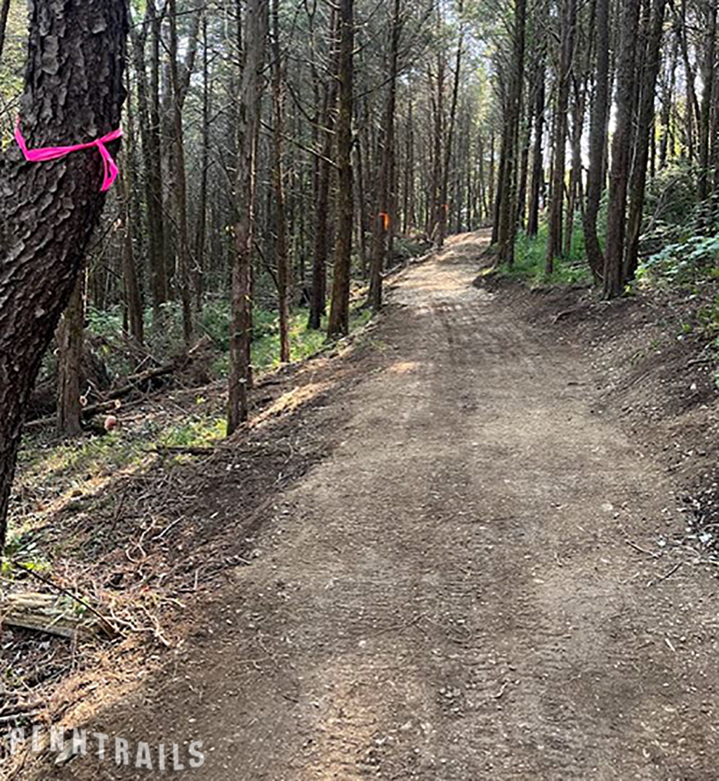 In order to accomodate the owner request for a trail to enable social recreation with their furry family, the trail was conceptualized to be wider than a typical singletrack walking path. While completing field design, it became clear that upgrading the design to accommodate UTVs would also allow the owners to better access and manage their woodlot, which had some stunning high quality trees but also was heavily overgrown with invasive plant species. What resulted was a quarter-mile loop of compacted native soil built over the course of three weeks in September 2022.